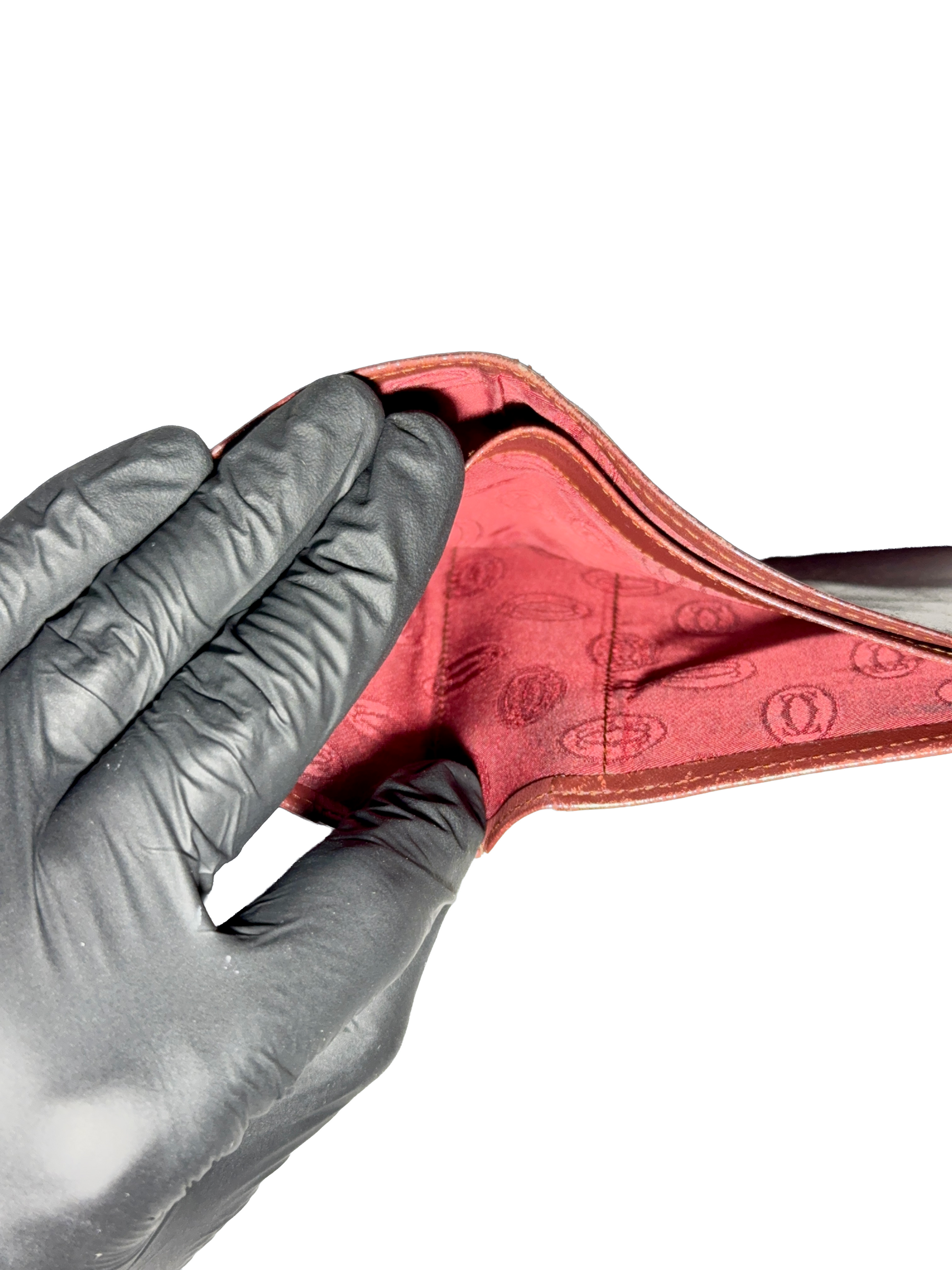 Réalisé en cuir de veau lisse de couleur bordeaux, le portefeuille arbore le monogramme emblématique “Double C” embossé à chaud sur la face extérieure. L’intérieur révèle une organisation soignée avec plusieurs fentes pour cartes, un compartiment à monnaie à bouton-pression, ainsi qu’un espace pour billets doublé de tissu jacquard siglé Cartier. Les coins sont renforcés par des angles en métal doré, ajoutant à la fois une touche précieuse et une meilleure durabilité. La signature “Cartier Paris” est estampillée en lettres dorées à l’intérieur, dans un coin discret.
