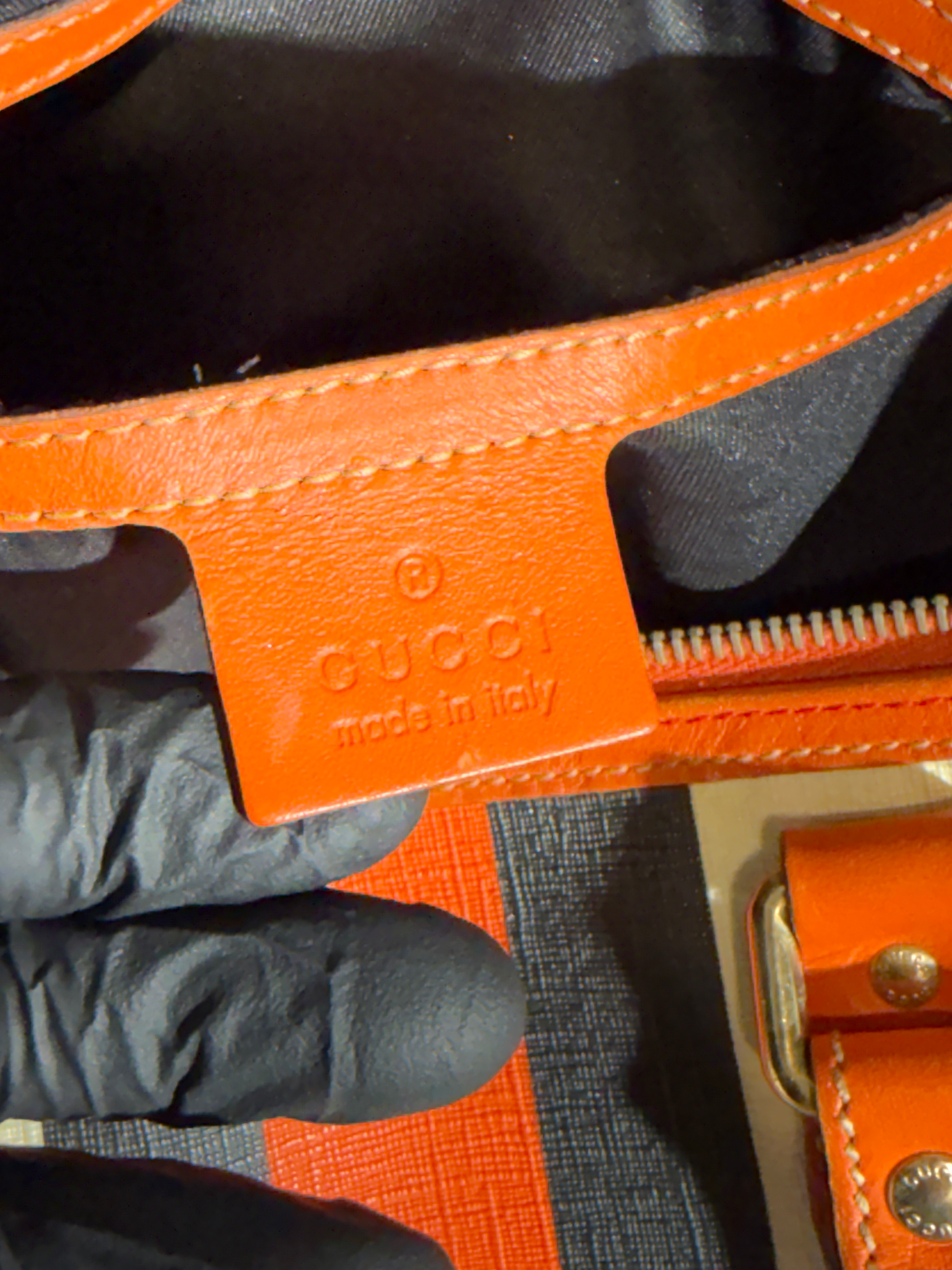 Icône de la maison Gucci, le sac Boston est un incontournable de la maroquinerie de luxe. Ce modèle vintage en toile monogramme beige, sublimé par des bandes centrales orange et noir, se distingue par ses finitions en cuir camel et ses anses rigides. Pratique et élégant, il se porte aussi bien en sac de voyage qu’au quotidien, ajoutant une touche rétro chic à votre look.